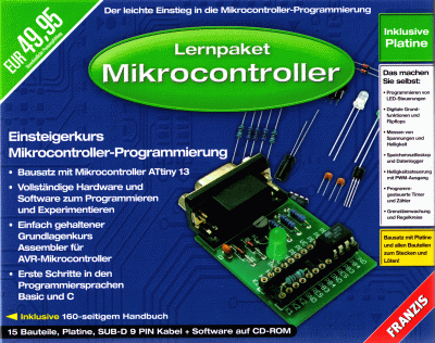 Die neuere Entwicklung hat immer mehr Funktionen in einen kleinen Chip gebracht. Ein achtbeiniges IC wie der im Lernpaket enthaltene ATtiny13 bietet bereits so viele Möglichkeiten, dass es fast unmöglich ist, alle zu nutzen. Der Umstieg auf höhere Programmiersprachen fällt nicht schwer, wenn Sie vorher die Assembler-Schule durchlaufen haben. Das Handbuch zeigt die ersten Schritte mit den Programmiersprachen Basic und C.
